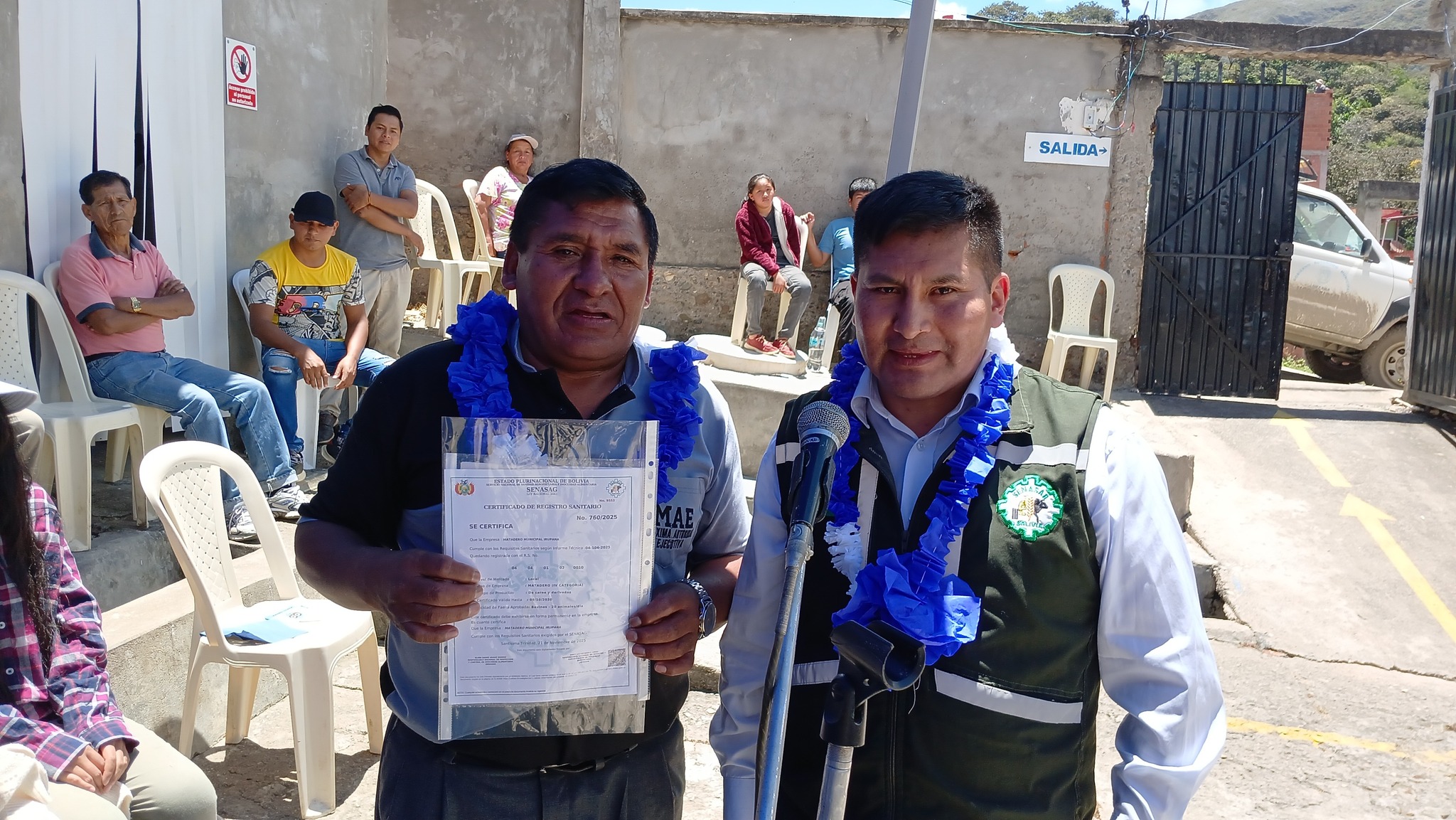 La actividad se desarrolló esta jornada con la entrega del Registro Sanitario del Matadero Municipal de Irupana, proceso que estuvo a cargo del SENASAG, entidad que realizó la revisión y verificación del cumplimiento de las normas sanitarias.